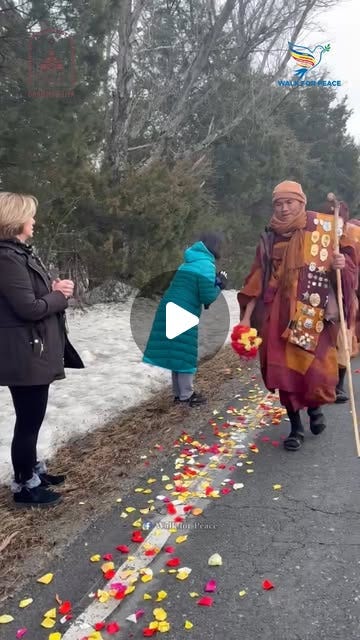 Bowing, hands in prayer: they are so much more elegant than a boring handshake. They have such grace and power. I’m going to stop handshaking and start doing classy Asian greetings instead. I’ve been thinking this because I’ve been following the progress of several Buddhist monks who have walked over 2300 miles across the US from Texas to Washington DC. At first, nobody really paid them attention, even though they were walking with a very charming dog called Aloka — who adopted the monks when they did an earlier walk through India — and although the sight of several men with shaved heads dressed in maroon and saffron robes (sometimes they wore hats and ski gloves and boots depending on the weather) walking single file, steady and unrelenting, along American highways: well, it’s quite arresting. The walk is called the Walk for Peace, and it has been a treat to watch online. As the monks got further east, their following grew, and soon they were greeted by fans in every place they walked. What struck me was how many people stood by the side of the roadside, their hands in prayer — and the monks greeted them with the same gesture — and seemed emotionally overwhelmed. By some monks walking.